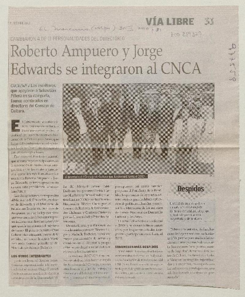 Roberto Ampuero y Jorge Edwards se integraron al CNCA [artículo].