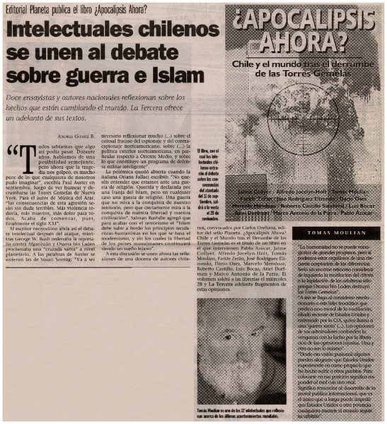 Intelectuales chilenos se unen al debate sobre guerra e Islam [artículo] Andrés Gómez B.