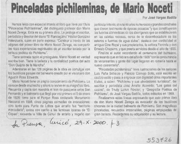 Pinceladas pichileminas, de Mario Noceti [artículo] José Vargas Badilla