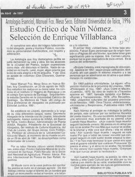 Nómez, Naín - MESA SECO, MANUEL FRANCISCO - ANTOLOGIA ESENCIAL