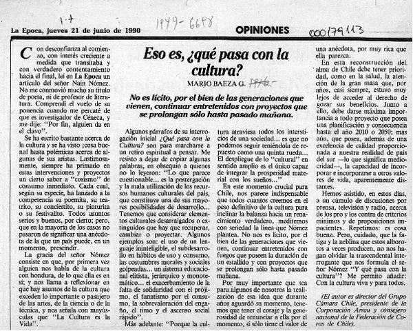 Eso es, qué pasa con la cultura? [artículo] Mario Baeza G.
