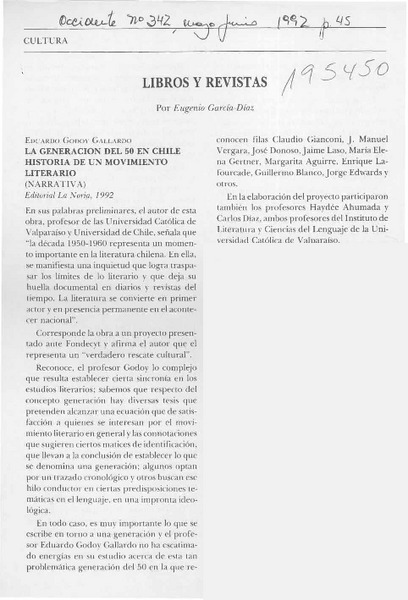 Libros y revistas [artículo] Eugenio García-Díaz.