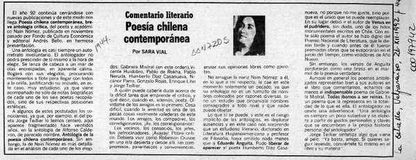 Poesía chilena contemporánea [artículo] Sara Vial.