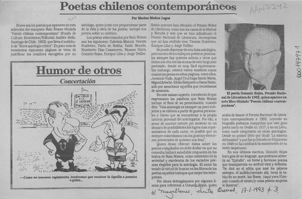 Poetas chilenos contemporáneos [artículo] Marino Muñoz Lagos.