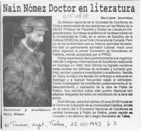 Naín Nómez Doctor en Literatura [artículo] Enrique Aravena