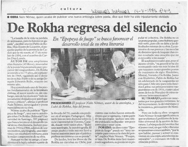 Presentan nueva antología de la obra del poeta Pablo de Rokha [artículo] Alejandra Gajardo.