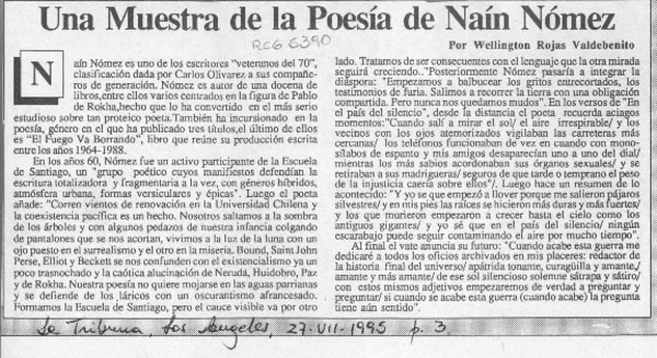 Una muestra de la poesía de Naín Nómez [artículo] Wellington Rojas Valdebenito.