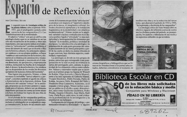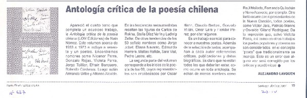 Antología crítica de la poesía chilena [artículo] Alejandro Lavquen.