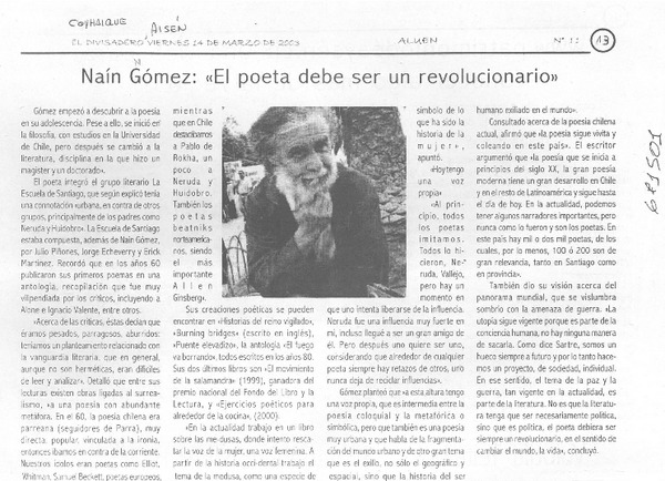 Naín Nómez, "el poeta debe ser un revolucionario". [artículo]