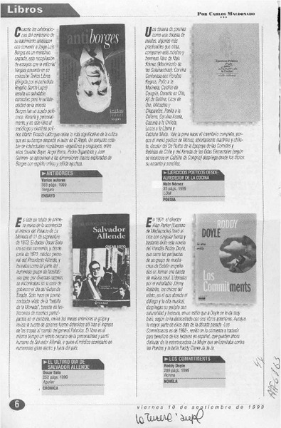 Autores chilenos - Cuevas, José Angel - Poesía de la comisión liquidadora - Nómez, Naín - Pérez, Floridor - Donoso, Gustavo - Navegancias - Piedra numerada - Poesía chilena contemporánea, breve antología crítica