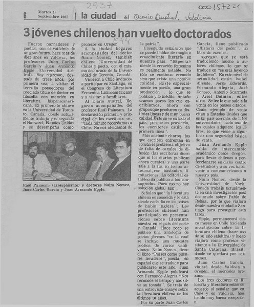 3 jóvenes chilenos han vuelto doctorados [artículo].