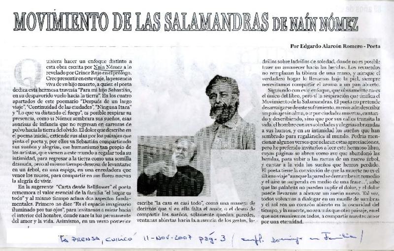 Movimiento de las salamandras [artículo] Edgardo Alarcón Romero.