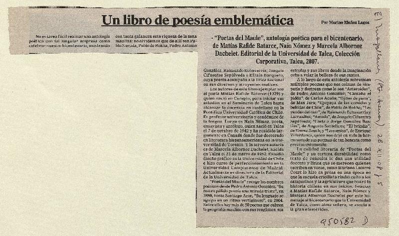 Un libro de poesía emblemática [artículo] Marino Muñoz Lagos.