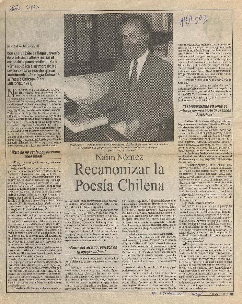Autores chilenos - Entrevistas - Nómez, Naín - Antología crítica de la poesía chilena