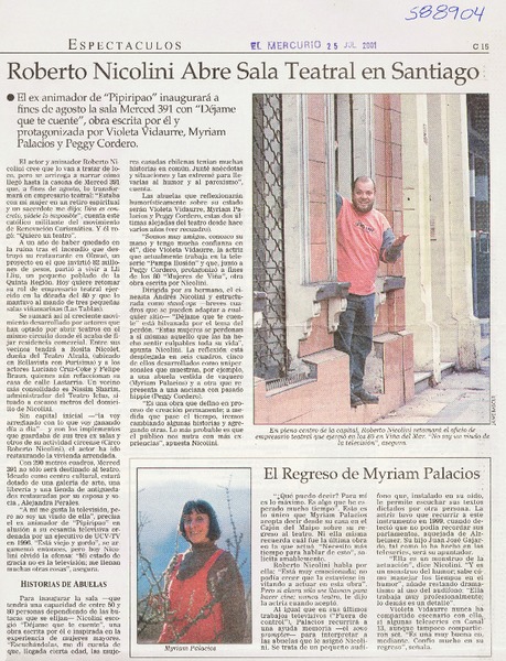 Roberto Nicolini abre sala teatral en Santiago [artículo].