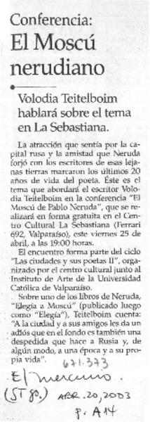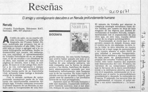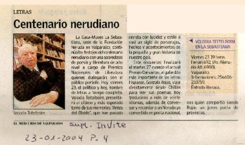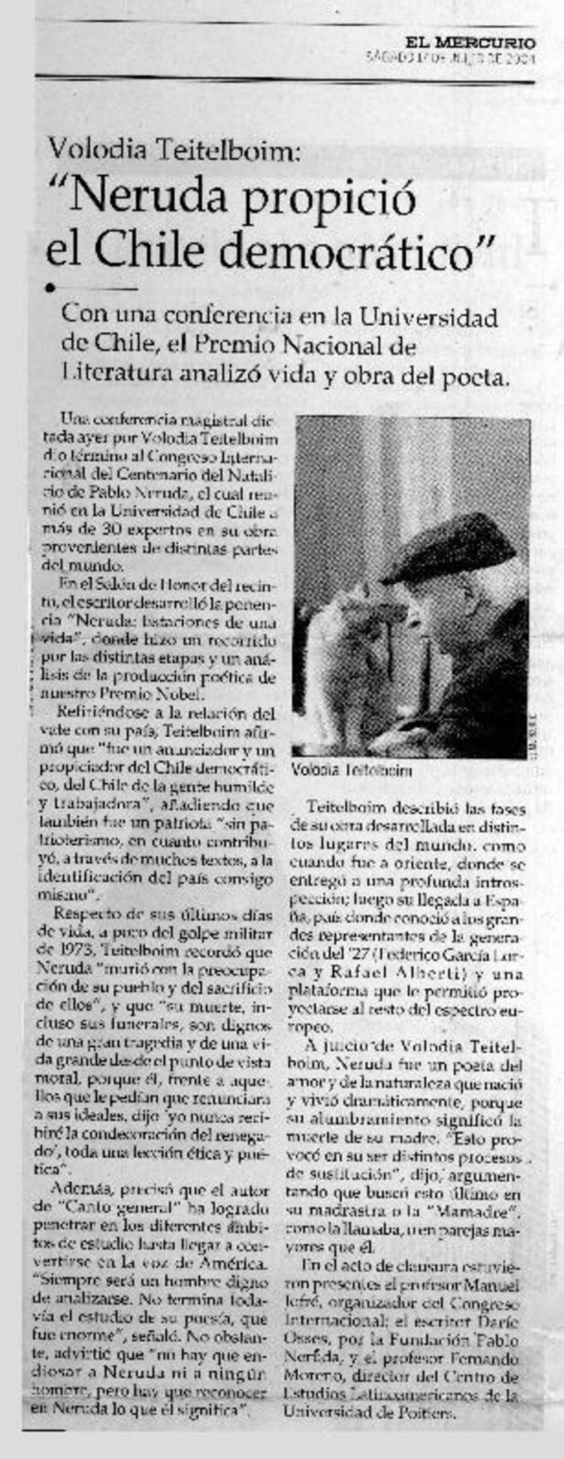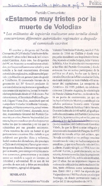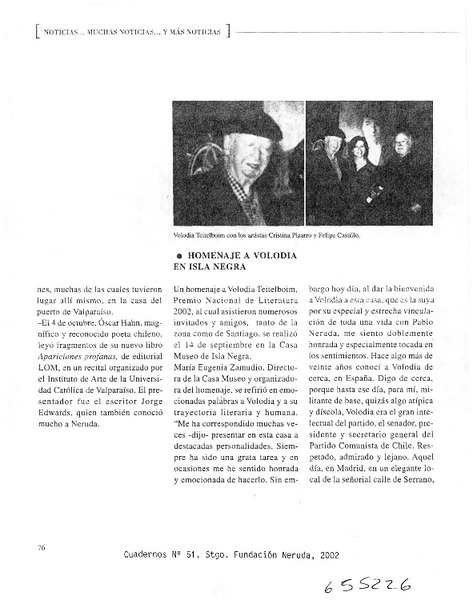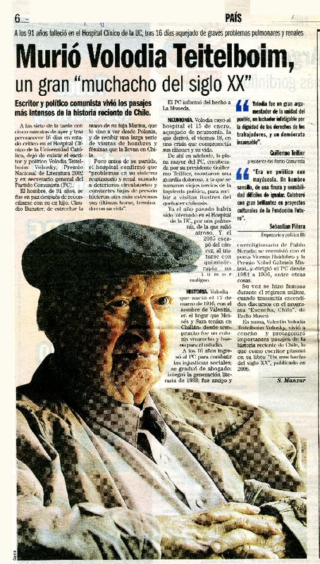 Volodia Teitelboim, "todavía siento la muerte de Pablo" [artículo] P. M. A.