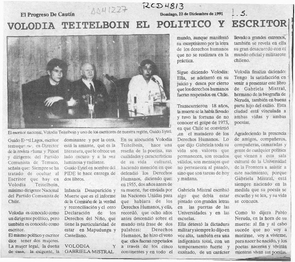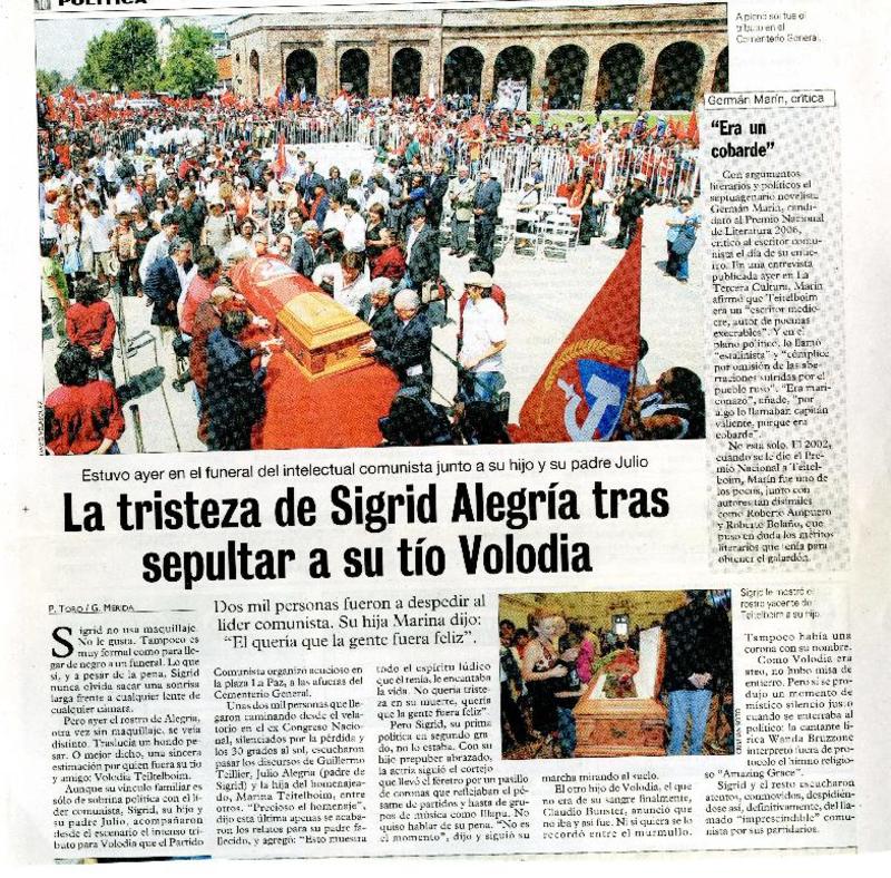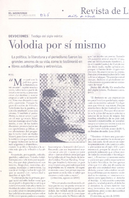 Volodia Teitelboim revisa su pasado en dos nuevos libros [artículo] Cristóbal Peña.