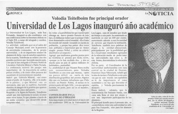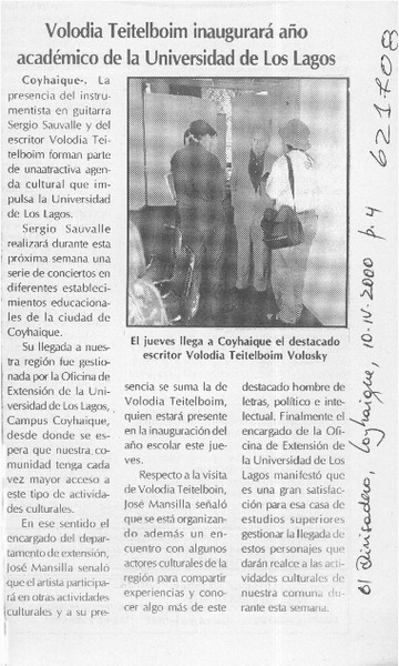 Volodia Teitelboim inaugurará año académico de la Universidad de Los Lagos [artículo]