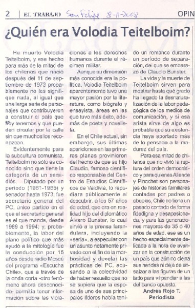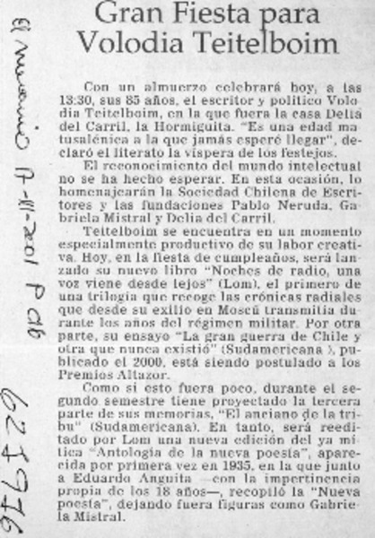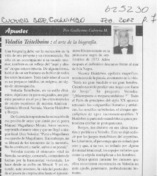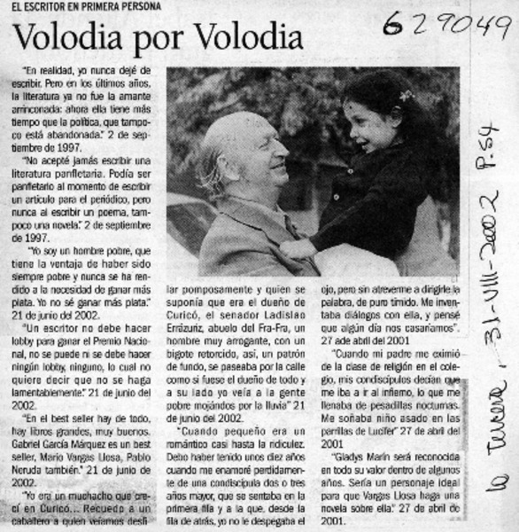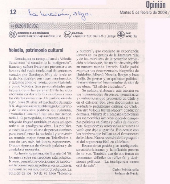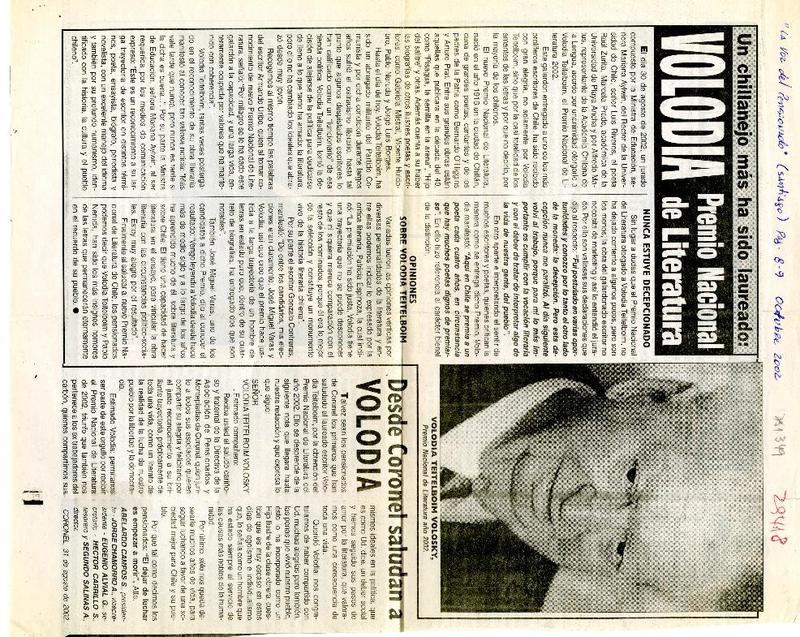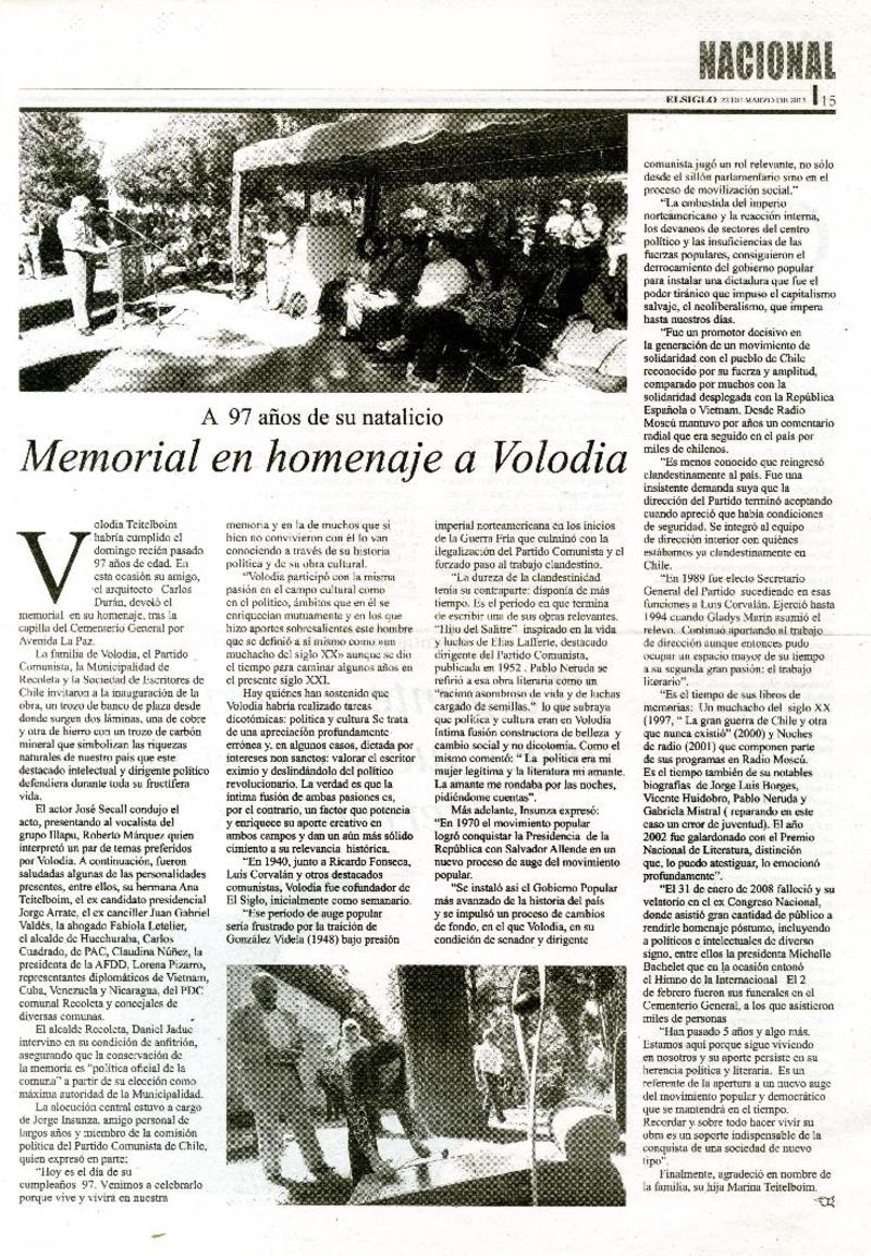 Volodia, un imprescindible [artículo]Carlos Ernesto Sánchez.