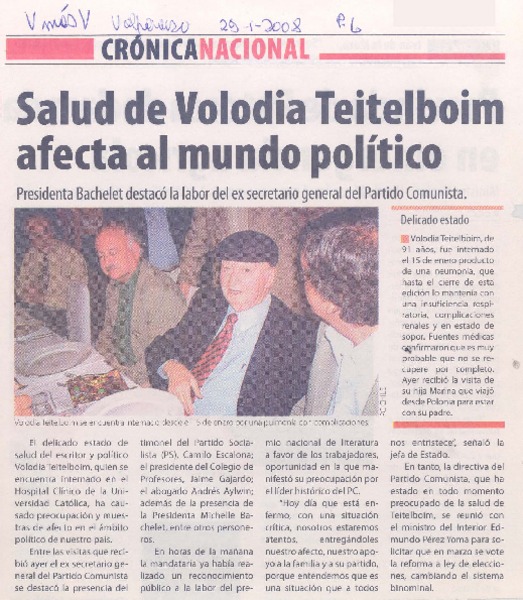 Bachelet realiza extensa visita a Teitelboim [artículo] Ntalia Hernández.
