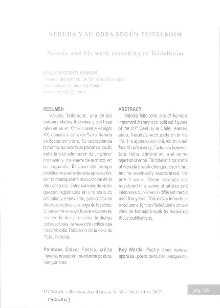 Volodia Teitelboim volcado a la literatura [artículo] Roberto Viereck.