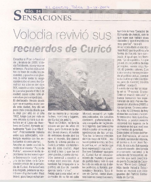 Chilllán honra al gran Volodia [artículo]Alvaro Peña.