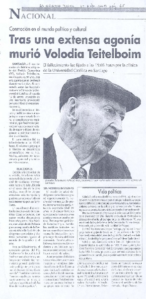 Volodia Teitelboim se encuentra entre la vida y la muerte [artículo].