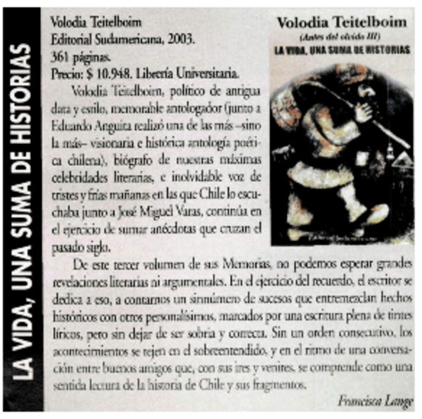 Entrevistas - Teitelboim, Volodia - Autores chilenos - Vida, una suma de historias