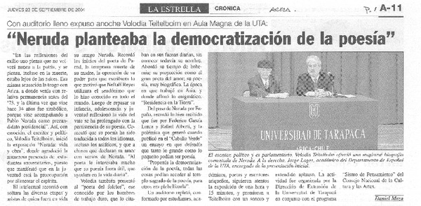 Volodia Teitelboim ofrece clase magistral en la ULA [artículo]
