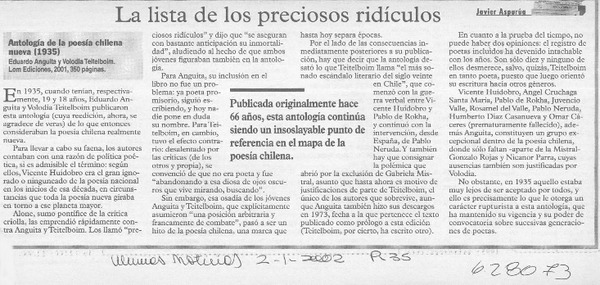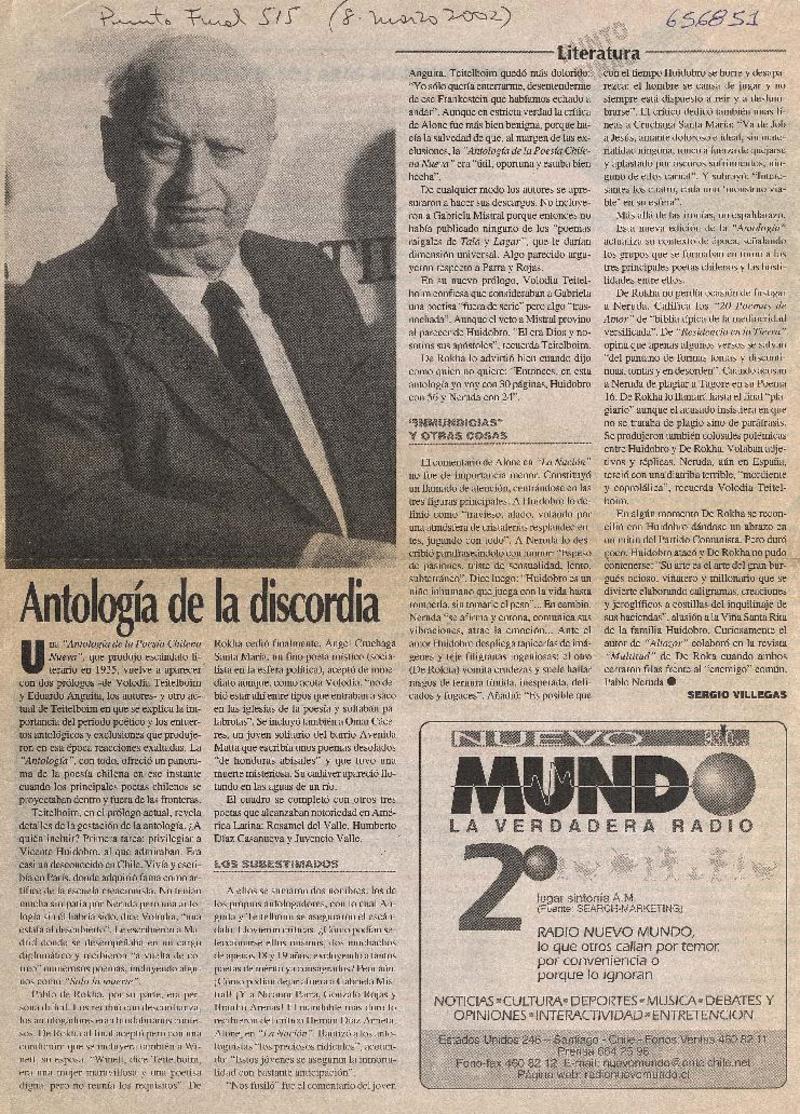 Antología de la poesía chilena nueva [artículo] Volodia Teitelboim.