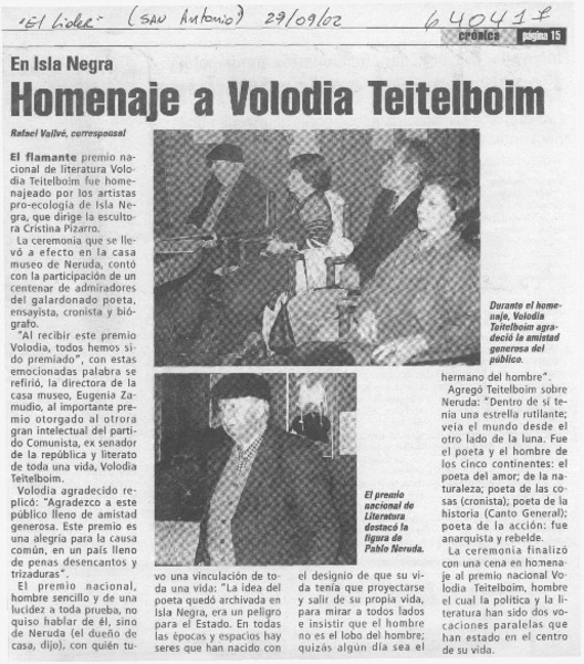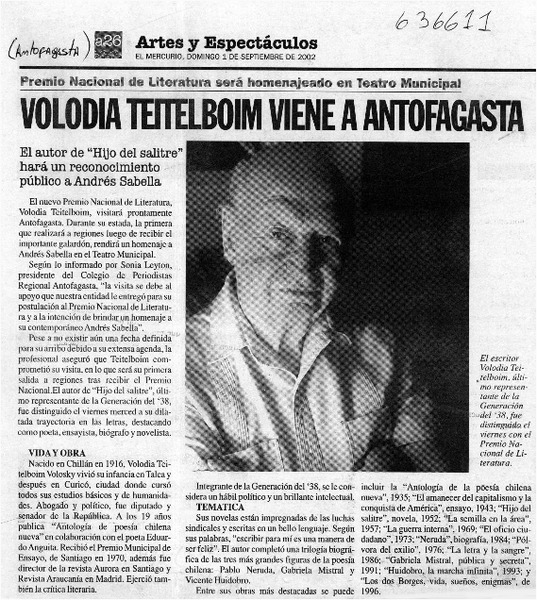 Volodia Teitelboim, Premio Nacional de Literatura 2002 [artículo]