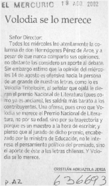 Volodia, un hombre íntegro [artículo] J. T. A.