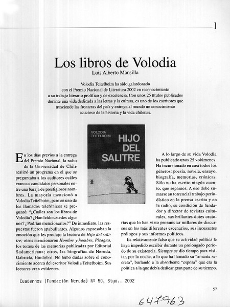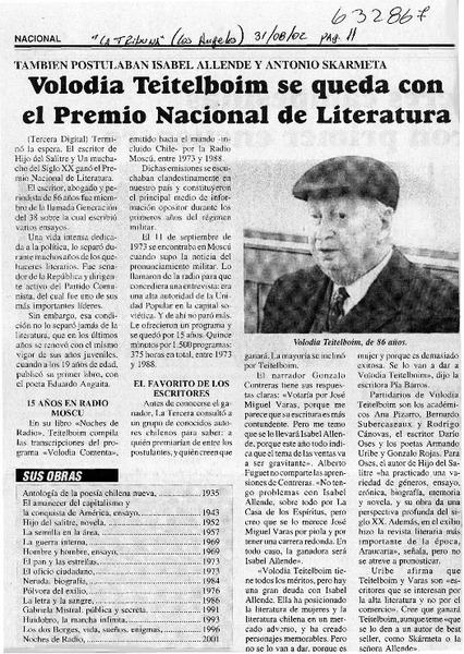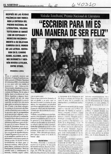 Volodia Teitelboim Premio Nacional de Literatura 2002 [artículo]