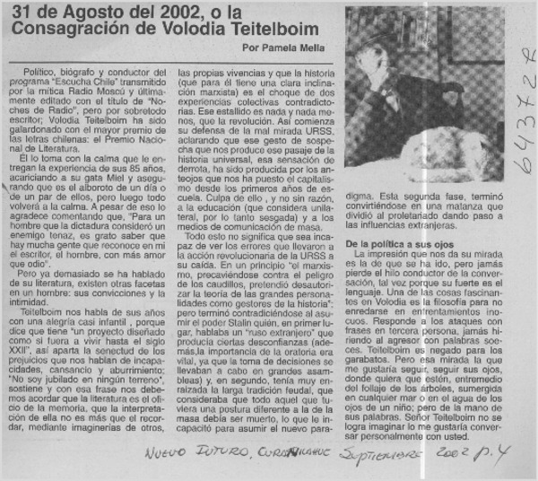31 de agosto del 2002, o la Consagración de Volodia Teitelboim [artículo] Pamela Mella
