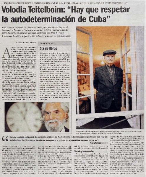 Volodia Teitelboim, "en la vida no hay recetas" [artículo] Angel Carcavilla.