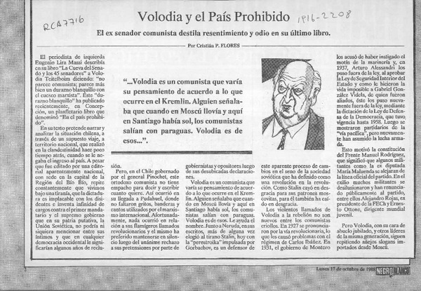 Volodia y el país prohibido [artículo] Cristián P. Flores.