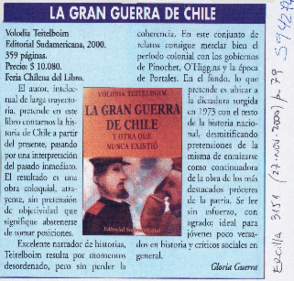Volodia Teitelboim y la gran guerra de Chile [artículo] Wellington Rojas Valdebenito.