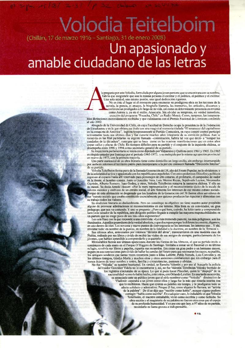 Volodia Teitelboin : un apasionado y amable ciudadano de las letras [artículo] F.Q.