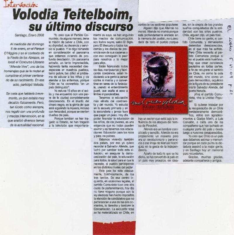 Volodia Teitelboim : "Hay que levantar el veto a Isabel Allende" [artículo] Marcelo Soto.