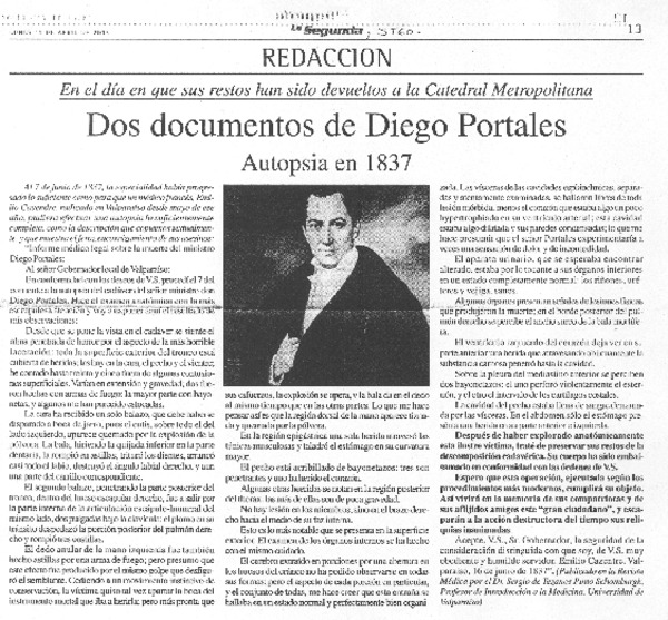 "Ideas y confesiones de Portales" [artículo] Gonzalo Drago.