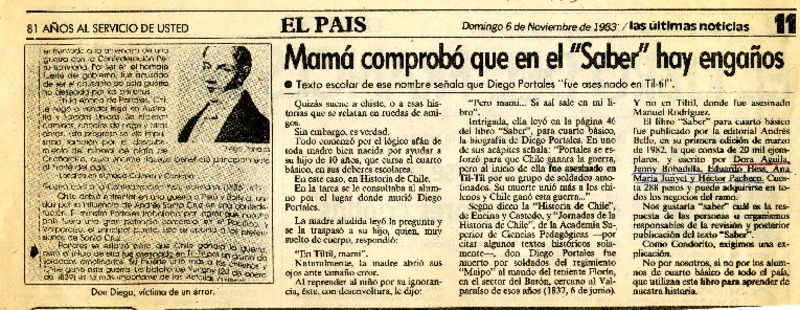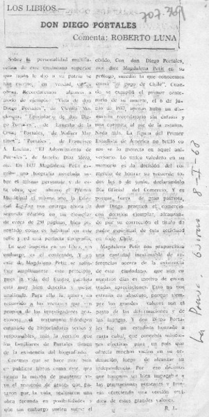 Portales, juicio históricos" [artículo] Fernando Kri.