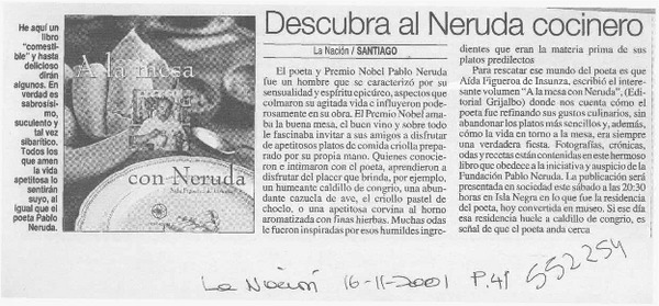 A la mesa con Neruda [artículo] Alfredo Barría M.