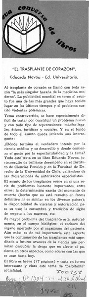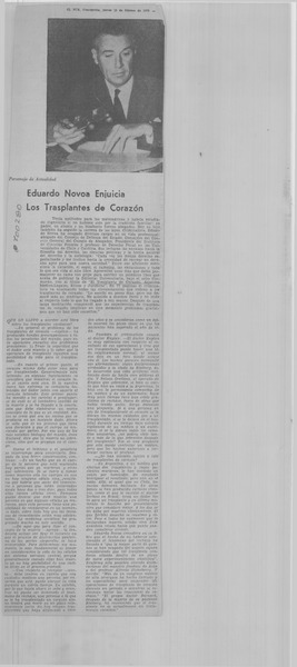 Eduardo Novoa enjuicia Los transplantes de corazón. [artículo]