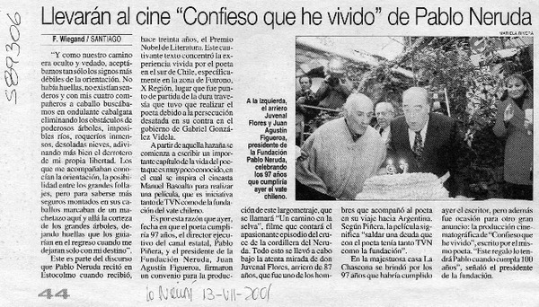 Llevarán al cine "Confieso que he vivido" del poeta Pablo Neruda [artículo]
