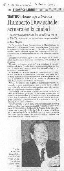 Humberto Duvauchelle actuará en la ciudad [artículo].