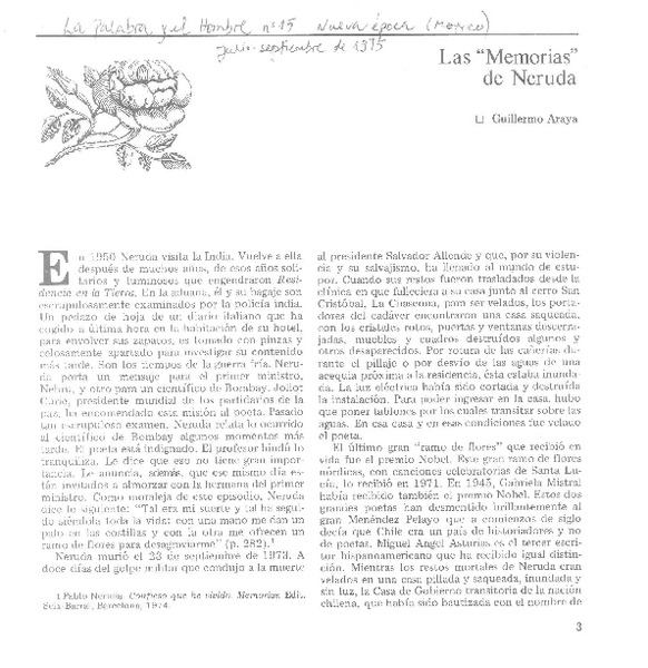 Las "Memorias" de Neruda [artículo] Guillermo Araya.