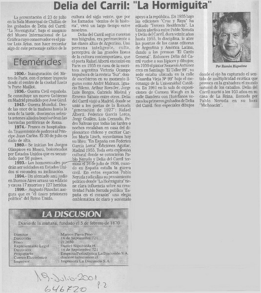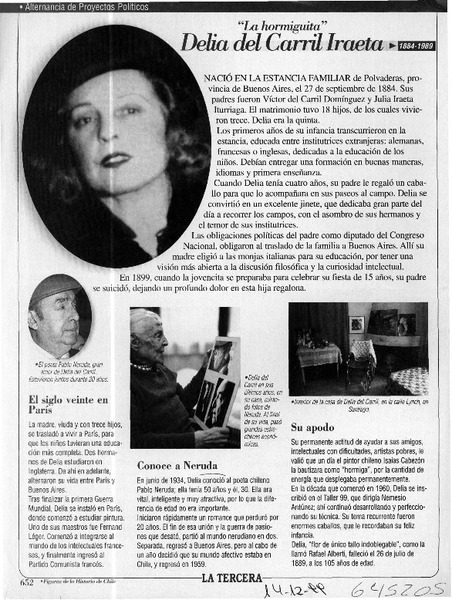 Delia del Carril, "La hormiguita" [artículo] Ramón Riquelme