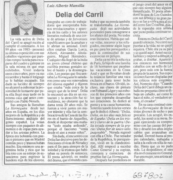 Delia del Carril [artículo] Luis Alberto Mansilla.