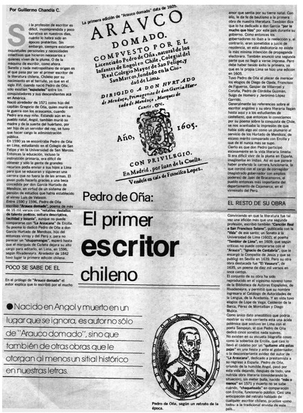Pedro de Oña, el primer escritor chileno [artículo] Guillermo Chandía C.