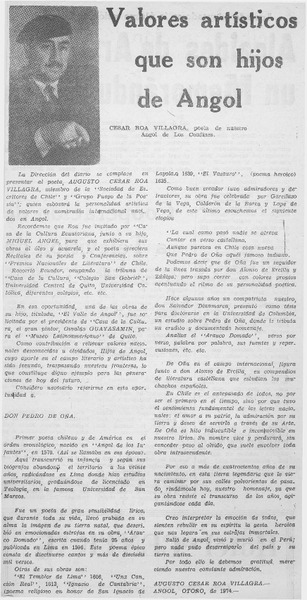 Valores artísticos que son hijos de Angol [artículo] Augusto César Roa Villagra.